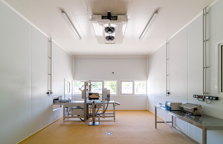 Within the laboratory, there are varying requirements for temperature control, spread across eleven different areas. The Tewis/Daikin 78.3 kW transcritical system provides positive cooling (0 to +2°C in some rooms and +8 to +10°C in others) to meet a range of needs throughout. Thirteen 1.8 kW to 10.5 kW evaporators (one/two per room) are directly connected to the transcritical system, while a second, insulated R-452 system was chosen to provide refrigeration in a separate cool room. An air treatment system using a ducted network provides air conditioning to corridors in the laboratory.
