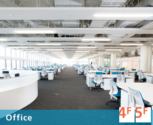 The meeting stage in the center of the office space assists waigaya (collaboration) across divisions and serves as an environment to promote “Fast & Flat” management that accelerates innovation. All the work areas are no further than 30 m (the limit to which people can recognize situations) from the stage.